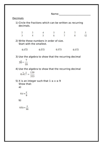 Worksheets on Decimals by Math Crush This one page art worksheet reviews basic decimals. It includes changing simple fractions to decimals, understanding the word form, plotting decimals on a number line, and two word problems. Student misunderstanding: Students should understand the difference between tenths and hundredths (Example: 0.4 and 0.04.) Decimals Worksheets Decimals Worksheet Generator for Teachers. Just input your options below and we will create a worksheet for you to print. Completely free with no registration required.